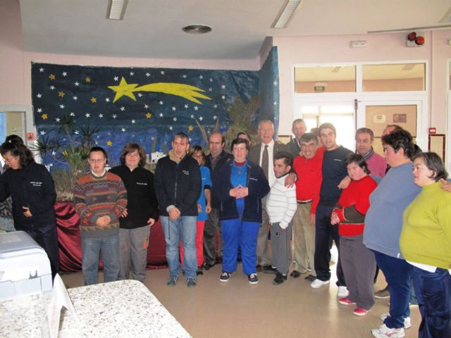 El concejal de Atención Social, Antonio Calderón, inauguró ayer jueves el Belén de ASTUS, un acto en el que estuvo acompañado por el presidente de la Asociación, Joaquín Barberá, y los alumnos y profesores de centro en las instalaciones de Prolam.