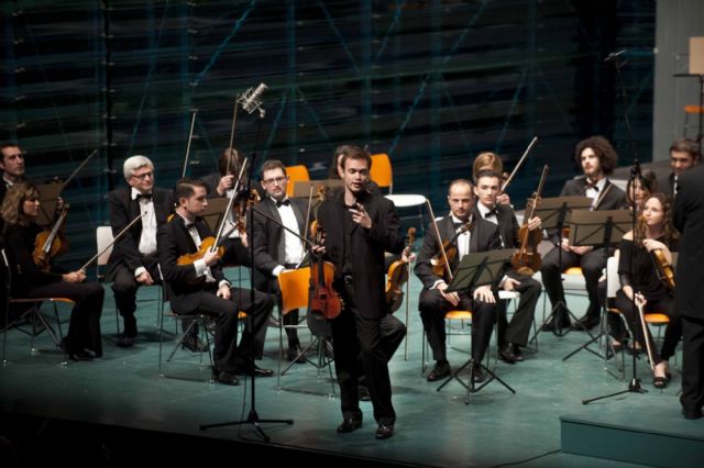 A pesar de que las puertas ya estaban abiertas a las 19.30, no fue hasta una hora más tarde, el horario previsto para el comienzo del concierto, cuando sonaron las primeras notas por este recinto. Felipe Rodríguez, ganador de la modalidad de violín del Concurso de Jóvenes Talentos Entre Cuerdas y Metales, fue el encargado de protagonizar esta sesión con tan sólo 15 años de edad. Jordi Mora se convirtió en la batuta de este evento musical y es uno de los habituales de la Orquestra Simfònica Segle XXI y de la Bruckner Akademie Orchester.
