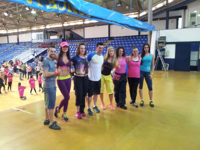Unas 250 personas no se quisieron perder esta cita solidaria en la que se recaudó un total de 15 cajas grandes de comida. Desde las 11.30 hasta las 13 horas, los centenares de alumnos bailaron al son de los ritmos caribeños. Dos profesoras de la Concejalía de Deportes, Ana Belén Albaladejo e Irene García, impartieron esta clase de zumba junto a otros 6 docentes de gimnasios privados. Uno de ellos, de Ceutí, desplazó en autobús hasta un total de 50 participantes de esta localidad.