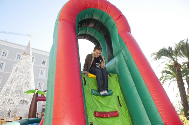 Los niños ya pueden disfrutar del Parque Jurásico de hinchables instalado en Héros de Cavite, incluido en la programación de Navidad de la Concejalía de Festejos. Tras la lluvia del pasado viernes y sábado, este domingo se abrió al público y hoy lunes se ha inaugurado de manera oficial, con presentación a los medios de comunicación incluida, por parte de la edil del área, Florentina García Vargas.