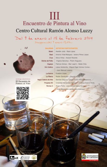 El Centro Cultural Ramón Alonso Luzzy de Cartagena acoge a partir de este jueves una muestra del III Encuentro de Pintura al Vino. Hasta el 18 de febrero estará abierta esta exposición en la que se presentan los trabajos realizados en la jornada del pasado noviembre en la que el vino es el principal protagonista.
