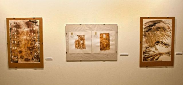 Una de las técnicas que podíamos ver en el III Encuentro es la que consiste en cocer el vino para obtener así una mayor consistencia con el fin de lograr tonalidades más fuertes. Un contraste que aviva estas obras y que sorprende aún más al espectador que lo ve y que puede disfrutar de los distintos aromas y matices que tiene.