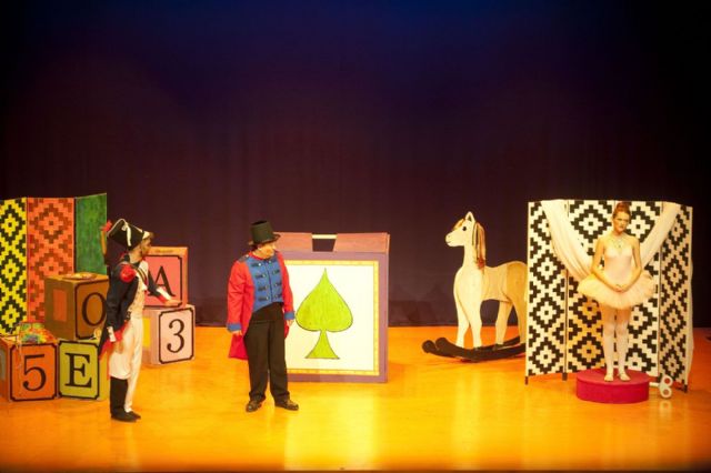 El musical subía al escenario esta mañana en dos sesiones, a las 10 y 12 horas. Los ex alumnos de la Escuela Municipal de Teatro se encargaban de recrear a estos personajes que hacían reír a los niños. Andrés Navarro hacía de soldadito, Sandra Egea de la bailarina enamorada, Antonio García del malvado bufón y Jessica Segura de la perversa rata.