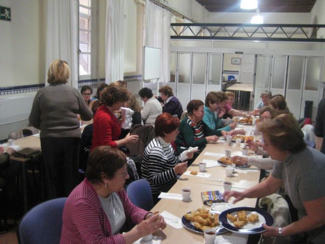 Una treintena de personas mayores ha recreado hoy la receta para la elaboración de los tradicionales buñuelos, a través de uno de los talleres incluidos en el programa de actividades de la Concejalía de Atención Social