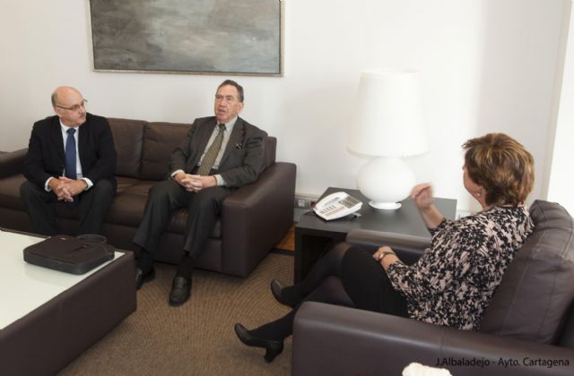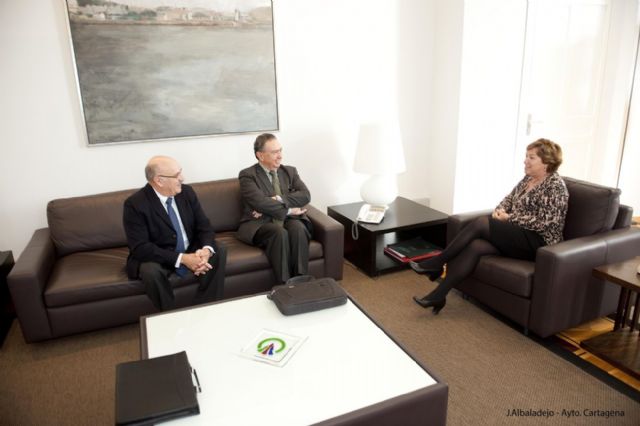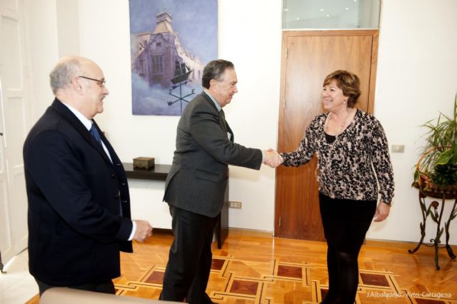 La alcaldesa, Pilar Barreiro, ha recibido esta mañana al presidente-decano de la Asociación de Ingenieros Navales y Oceánicos de España (AINE) y de los Colegios de Ingenieros Navales (COIN), Luis Vilches, junto al decano regional, Juan Luis Torres. Ambos le han presentado los últimos detalles del Congreso Nacional de Ingeniería Naval e Industria Marítima que se celebrará este año en Cartagena.