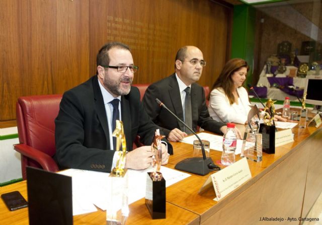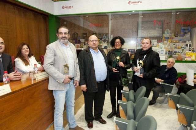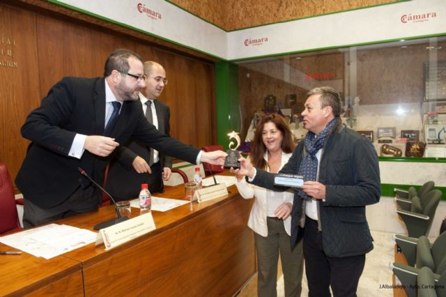 El concejal de Comercio, Mariano García; el presidente de la Cámara, Miguel Martínez; y la vicepresidenta del COEC y presidenta de Hostecar, Francisca Naranjo, han sido los encargados de entregar los premios en un acto realizado esta mañana en la Cámara de Comercio.
