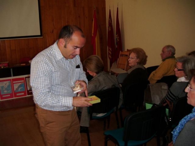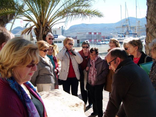 Los mayores del ciclo Un paseo por la historia y tradiciones de nuestra ciudad que organiza la concejalía de Atención Social del Ayuntamiento de Cartagena, han realizado esta mañana un visita palenteológica guiada por el biólogo y paleontólogo, Alfredo Castilla, quien previamente les ha impartido una charla en el Edificio de La Milagrosa.