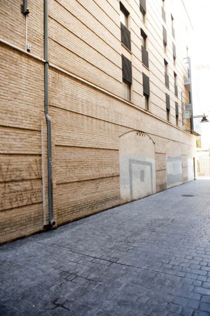 A la superficie se le ha dado un tratamiento de adoquín impreso, en consonancia con el resto de vías aledañas, creando una salida de servicio para los vehículos de los usuarios del aparcamiento privado situado en esta calle.