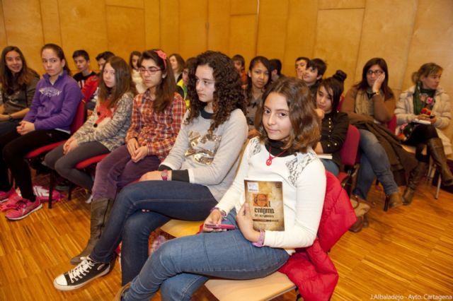 Ayer el escritor se encontraba con estos adolescentes en los Centros Interculturales del Menor en las Escuelas Graduadas y hoy jueves lo hacía a primera hora en el Colegio San Vicente de Paúl. Unas horas más tarde presentaba su obra y respondía las dudas de los 600 lectores de los centros de enseñanza secundaria en el Paraninfo de la UPCT. También respondía las preguntas de los periodistas minutos antes en un acto al que asistía la concejala de Juventud, Ruth Collado.