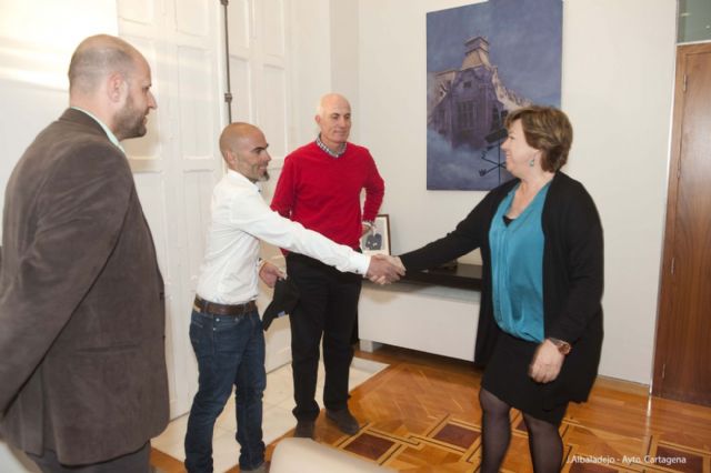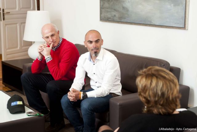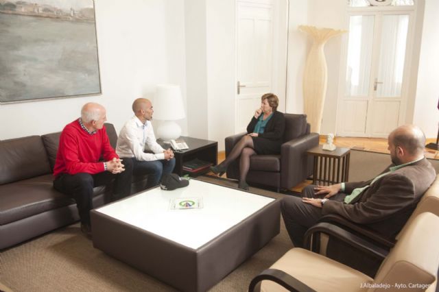 El atleta cartagenero Andrés Lledó no ha perdido ni un ápice de su ánimo para continuar con el reto de superar la 4Desert, y así se lo ha hecho saber a la alcaldesa, Pilar Barreiro, durante el encuentro que han mantenido hoy lunes en el Palacio Consistorial, al que ha acudido acompañado por el concejal de Deportes, Diego Ortega, y atesorando el símbolo de su premio, una medalla de cerca de medio kilo de peso y con la ciudad de Petra al fondo, que le recordará que consiguió acabar la Sahara Race.