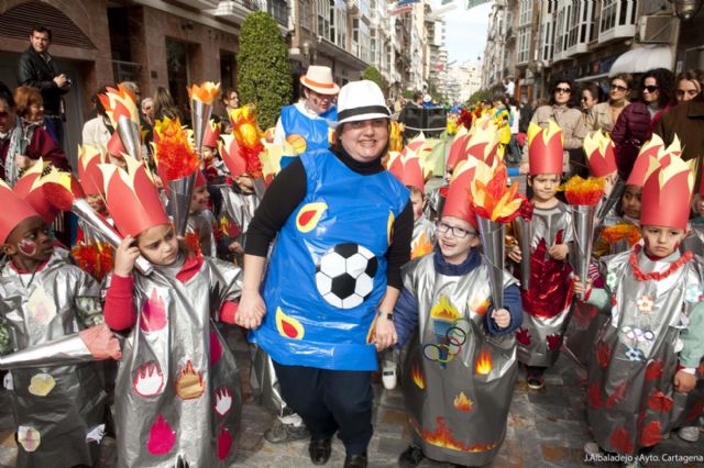 Decenas de niños recorrían las calles del casco vestidos como pequeñas antorchas de los Juegos Olímpicos para festejar el Carnaval