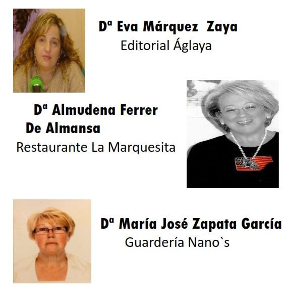 La Asociación de Amas de Casa, Consumidores y Usuarios de Cartagena, ha acordado entregar los premios  DIA DE LA MUJER en su cuarta convocatoria a Eva Márquez Zaya de Editorial Áglaya, Almudena Ferrer de Almansa del Restaurante La Marquesita y Mª José Zapata García de Guardería Nano´s.