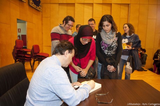 El escritor visita estos días Cartagena por segunda vez, la última fue hace poco más de diez años, para reunirse con centenares de lectores que se encargarán de elegir la novela ganadora. Se trata del único autor que faltaba en participar en estos tradicionales encuentros que se realizan a lo largo del año escolar.