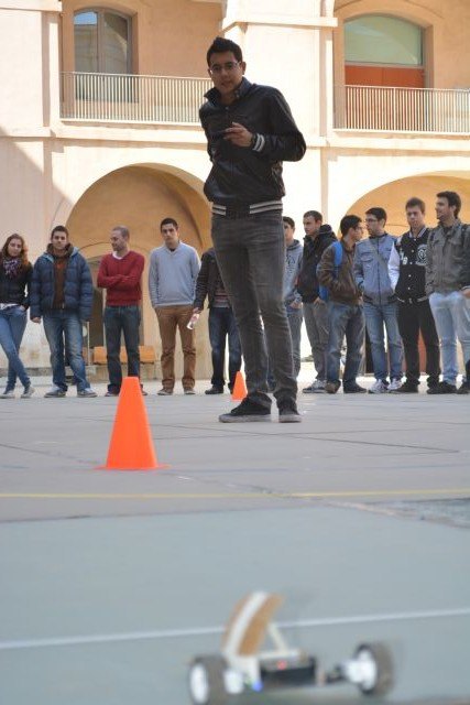 La segunda jornada de las Fiestas de San José en la Universidad Politécnica de Cartagena (UPCT) ha acogido una innovadora competición de coches teledirigidos mediante el movimiento de teléfonos móviles.