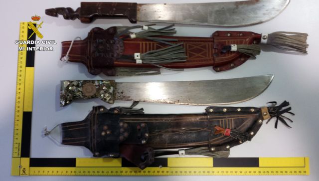 Han sido recuperadas prendas de vestir, cable de cobre y dos cuchillos de coleccionismo, esgrimidos por el detenido en el momento de su detención
