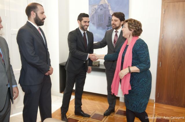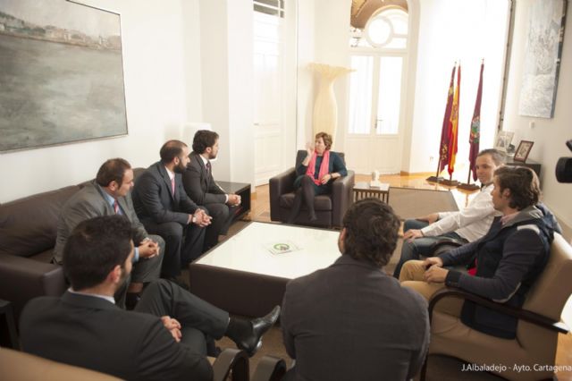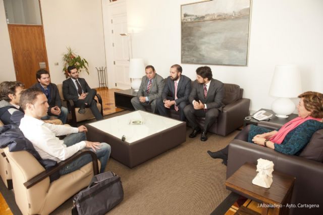 El recién elegido presidente de la Asociación de Jóvenes Empresarios de Cartagena y Comarca (AJE), Ãlvaro Valdés, visitaba esta mañana a la alcaldesa, Pilar Barreiro, para presentar a su nueva junta directiva tras su toma de posesión el pasado mes de febrero y transmitirle su colaboración en el desarrollo de la ciudad, en concreto, en el casco antiguo.