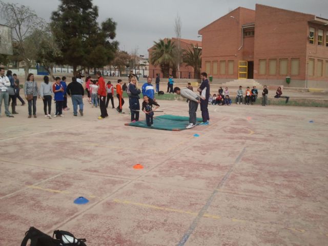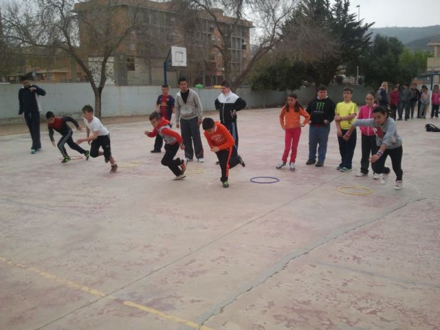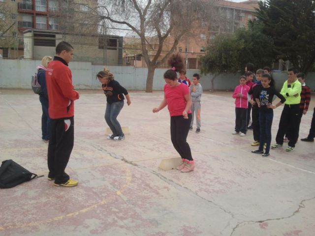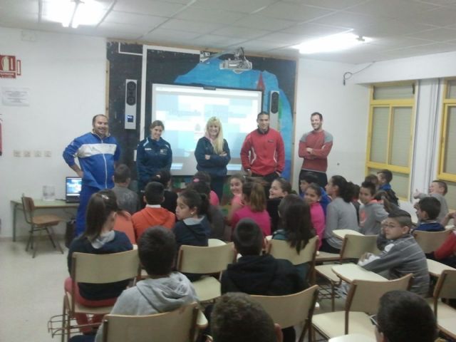 El programa ADE de la Concejalía de Deportes organizó el miércoles un encuentro de los escolares con atletas y monitores de los clubes Elcano y UCAM Cartagena, que se celebró en las instalaciones del centro escolar