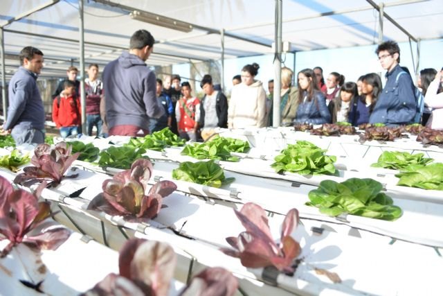 Venidos de centros de Murcia, Molina y Jumilla, los estudiantes han creado un huerto vertical, han conocido a la gallina murciana, los cultivos hidropónicos y el proyecto para sustituir la soja por habas y guisantes en el que participa la UPCT