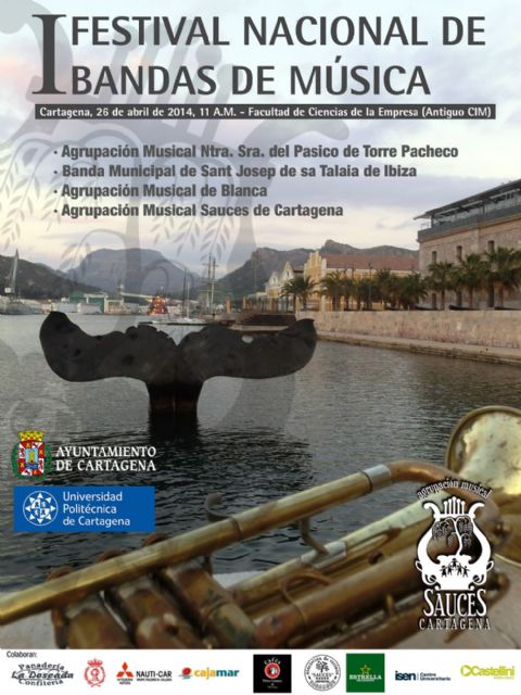 Cartagena acoge el próximo sábado, día 26, el I Festival Nacional de Bandas de Música que organiza la Agrupación Musical Sauces, junto con el Ayuntamiento y la Universidad Politécnica.