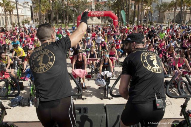 La explanada del puerto acogía este fin de semana a medio millar de personas que recibían clases de ciclo indoor, cross fit y zumba. Se trata del I Evento Solidario de la recién creada Asociación de Gimnasios que se organizaba por una buena causa. La recaudación, tanto el dinero como la comida, va destinada a Cruz Roja, en concreto, al programa de proximidad Más cerca que se desarrolla en Cartagena.