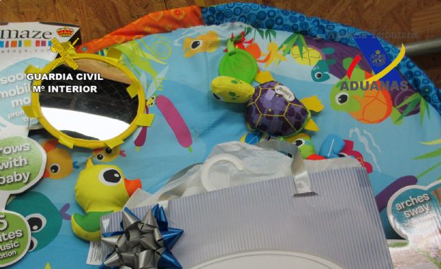 La Guardia Civil de la Región de Murcia, en colaboración con el Servicio de Vigilancia Aduanera, ha desarrollado la denominada operación 'THAYSA', que se ha saldado con la intervención de 1.500 gramos pasta de cocaína de gran pureza oculta en objetos de uso infantil e interceptada a su llegada a España en un paquete postal.