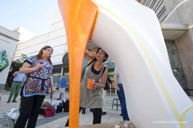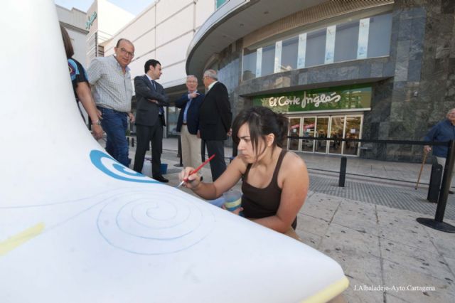 A la colección Shoe Street Art de la campaña Shoepping sólo le faltaba por pintar uno de los 13 zapatos gigantes que se exhiben por toda Cartagena. Una decena de miembros de la Asociación para la Integración Comunitaria de Enfermos Psíquicos de Cartagena y Comarca (APICES) fueron los encargados de colorear y llenar de luz este monumento situado a las puertas de El Corte Inglés, responsable de esta iniciativa junto con la colaboración de los Ayuntamientos de Cartagena y Elda y el Museo del Calzado de la localidad alicantina.