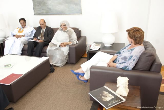 La ministra de Cultura saharaui, Jadiya Hamdi, visita esta semana Cartagena con motivo de su participación en las jornadas sobre su pueblo que organiza desde hoy lunes 26 hasta el jueves 29 la Universidad Politécnica. Esta mañana se acercaba hasta el Palacio Consistorial para encontrarse con la alcaldesa, Pilar Barreiro, y mantener un encuentro institucional en la que ha comentado la situación en la que vive el pueblo saharaui y ha firmado en el libro de oro de la ciudad. También asistía al encuentro el edil de Atención Social, Antonio Calderón, cuyo departamento gestiona el programa de acogimiento por parte de familias cartageneras de niños sharauis durante los veranos.