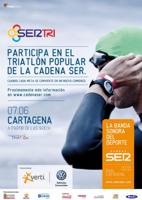 La Cadena SER, en colaboración con la Concejalía de Deportes y el Club de Triatlón Cartagena, organiza esta competición desde hace tres años sumándose al triatlón popular Ciudad de Cartagena, que cumple su novena edición. Este año, como novedad, el ciclo de SERTRI, que se celebra en diez ciudades españolas, arrancará este sábado en Cartagena, como anunciaba el director de la Cadena SER en Cartagena, Antonio Rosa, durante la presentación este martes del evento.
