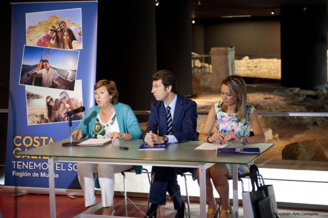 Cartagena, en concreto, el Augusteum, era el lugar escogido este año para la presentación de la campaña de promoción turística que contaba con la comparecencia hoy viernes del consejero de Industria, Turismo, Empresa e Innovación, Juan Carlos Ruiz, la directora general del Instituto de Turismo, Mariola Martínez, y la alcaldesa, Pilar Barreiro. Al acto también asistían como público diferentes representantes del municipio y la Región en materia de Turismo.