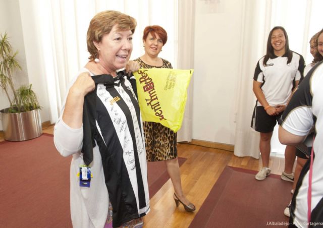 Durante la visita, que se llevaba a cabo en la Sala de Recepciones del Palacio Consistorial, las deportistas del equipo cartagenero le han regalado a la primera edil la camiseta del Cartagena firmada por todas ellas como recuerdo y agradecimiento por su apoyo. Por su parte, Barreiro también les ha obsequiado con una placa conmemorativa por su hazaña.
