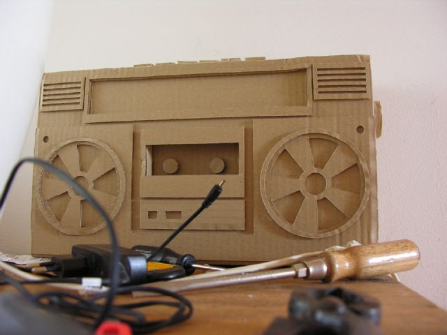 Desde el año 2007 Balanza trabaja con el cartón como un material más, lo he incorporado a su obra, junto al neón o el plástico, desarrollando un cuerpo de trabajo basado en la copia de tecnología a escala real, desde equipos de música, giradiscos, radiocasetes, máquinas tragaperras, tanques y cañones y un helicóptero. También, inspirado por la música, y apoyado por un ayudante desarrolló un club a escala real, un club berlinés de la época dorada de los 90, Cookies, con sus cámaras frigoríficas, cables, altavoces, sofás, sillas etc¡K Emplea este material por su calidad intrínseca y sus propiedades o sus cualidades. Entre ellas su precio, su inmediatez, su versatilidad y su ubicuidad. Trabaja con él desde que se fijó en las basuras separadas por sus características, el cartón está hecho a partir de fibras vegetales que viene de los árboles.
