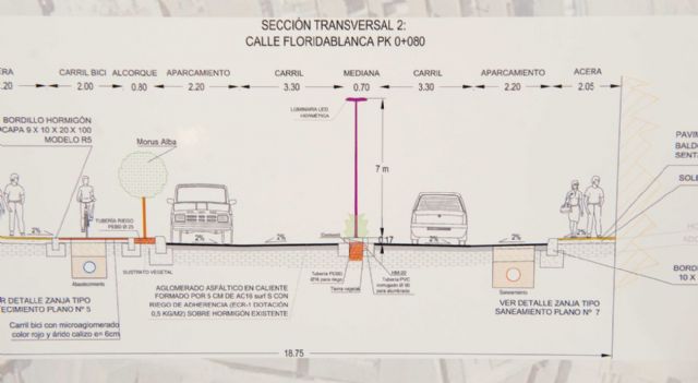 Se instalará además una mediana donde se habilitará el nuevo alumbrado, que supone un ahorro del 75% en iluminación, con veinte farolas menos pero con una mejor dispersión de la luz, como así explicaba hoy el ingeniero. Además se renovará el mobiliario y los servicios urbanos.