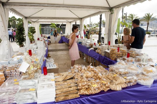Las almendras garrapiñadas del Monasterio de Fuensanta en Murcia, pasteles de frutos secos, glorias, rollizos de huevo de Orihuela, bizcochadas de Sanlucar de Barrameda u hojas y tortas de Marchena son algunos de los productos que ahora podemos ver en Cartagena en horario de 10,30 a 14,30 horas y de 18,30 a 23 horas