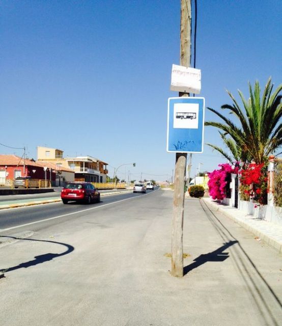 En esa misma línea la parada de autobús de San José Obrero sentido Cartagena, carece también de marquesina y apenas hay un arcén de seguridad en esta parada que se encuentra en plena nacional N-332, vía de comunicación con un intenso tráfico. En ese mismo lugar, pero sentido Los Molinos, hay ausencia de marquesina, pero el arcén es más ancho, siendo menos peligroso para la seguridad de los usuarios.