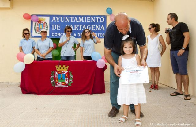 Con la llegada de septiembre toca echar el cierre a las actividades veraniegas de deportes, como las clases de natación que se impartían estos meses estivales en las piscinas municipales, que forma parte del programa Deporte en la arena de la Concejalía de Deportes del Ayuntamiento de Cartagena. Así el pasado viernes, día 29, se celebraba en la Piscina de la Casa de la Juventud la entrega de diplomas.