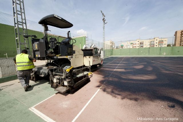 Hoy han comenzado las obras de reparación del pavimento de las pistas de tenis. Su presupuesto es de unos 20.000 euros y estarán ya listas la próxima semana.