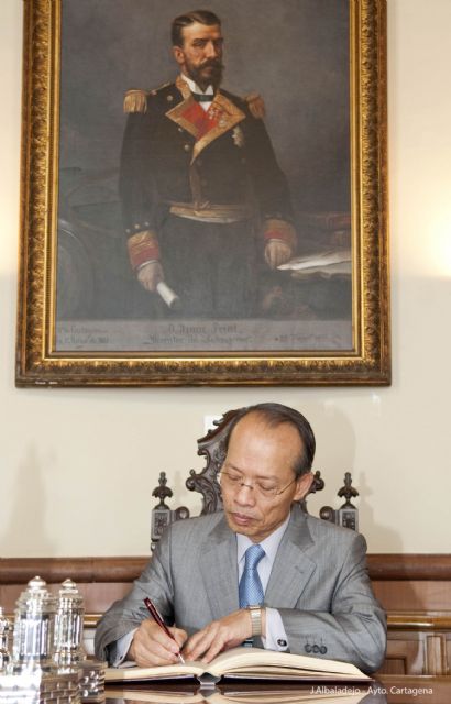 Cartagena podría ser en breve puerto de operaciones de las líneas marítimas taiwanesas, según ha señalado este mediodía el embajador del país asiático, Javier Ching-shan HOU, tras su visita al Palacio Consistorial, donde ha sido recibido por la alcaldesa, Pilar Barreiro.