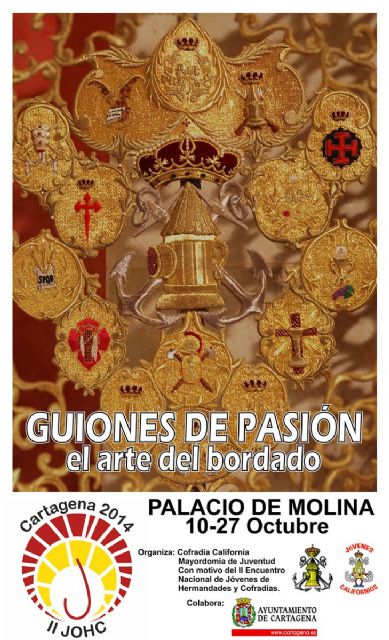 El Palacio Molina se transforma desde este viernes en un espacio de culto al arte del bordado de Cartagena. Será ese día cuando se inaugure, a partir de las 19,15 horas, la exposición Guiones de Pasión. El arte del bordado, y que contará con la asistencia de la concejala de Cultura, Rosario Montero.