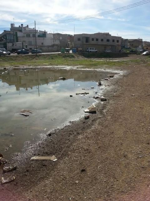 El solar que albergará en un futuro el ansiado Centro de Salud de Urbanización Mediterráneo-San Antón situado en la calle Amatista se ha convertido a raíz de las últimas lluvias en una charca insalubre.