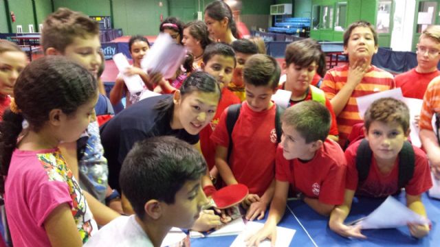 La actividad comenzó con la visita a las instalaciones, recorriendo la zona de trofeos y fotografías junto Enrique Pérez Miras Director de la Sección Tenis de Mesa de la UCAM: A continuación los escolares concocieron a los deportistas, realizaron preguntas y recibieron las oportunas explicaciones de estos profesionales, Maria Xiao, Lulia Necula, Li Xiang y Adriana (entrenadora) por el equipo femenino y Andrei por el masculino.