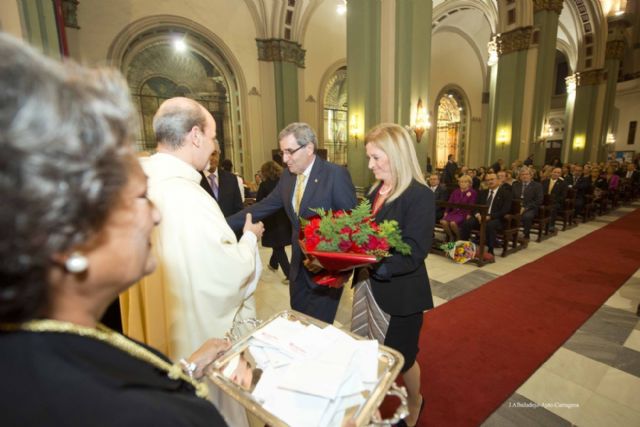 La ofrenda, que se celebró en la Iglesia de Santa María con una misa oficiada por el vicario general, Juan Tudela, coincidió, además, con la festividad de la primera patrona de Cartagena, la Virgen del Rosell. El acto contó con la asistencia de representantes de las principales entidades e instituciones, tanto civiles como religiosas de la ciudad, entre los que se encontraban los concejales de la corporación municipal, Antonio Calderón, Alonso Gómez, Clara Heredia y José López.