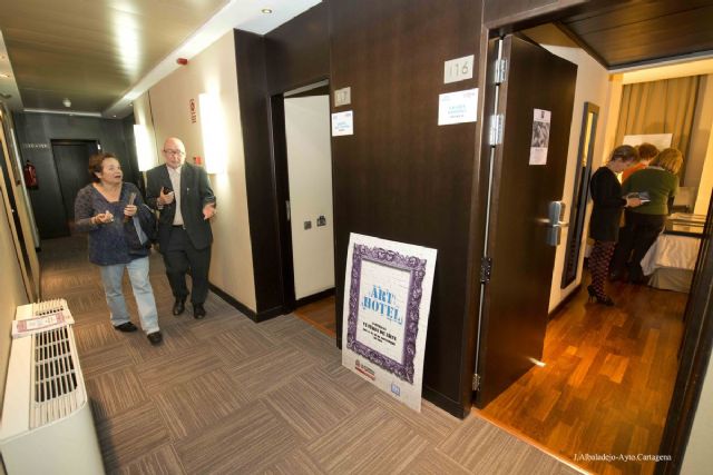La cama, la ducha, la mesilla de noche, el escritorio o la misma puerta de entrada. Todo servía este fin de semana para exponer las obras del ArtHotel, la feria que acogía Cartagena este fin de semana en un escenario singular, las habitaciones de un hotel.