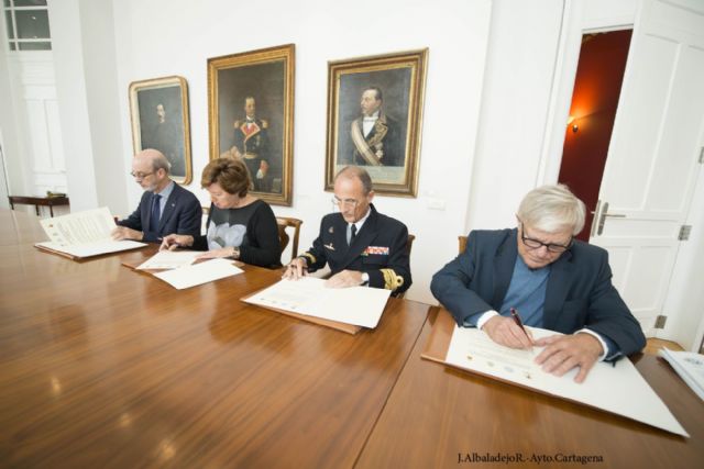 Los firmantes del acta han sido la alcaldesa de Cartagena, Pilar Barreiro; el rector de la Universidad Politécnica de Cartagena, José Antonio Franco Leemhuis; el director general de la Fundación Centro Internacional para la Conservación del Patrimonio, Miguel Ángel Fernández Matrán, y el Almirante del Arsenal de Cartagena, Fernando Zumalacárregui.