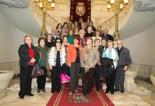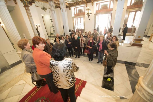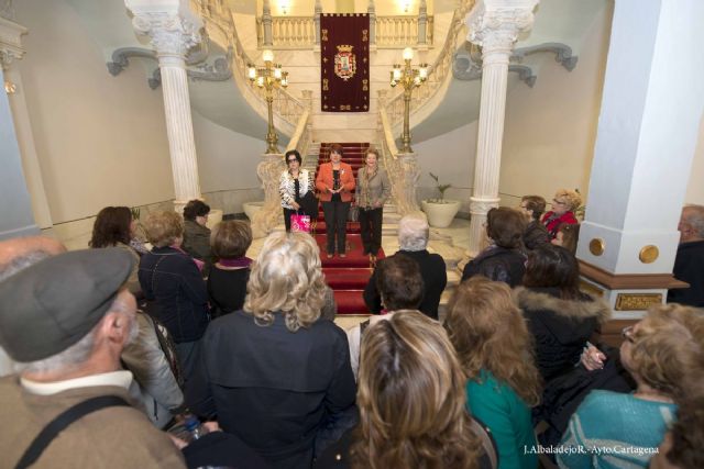 Cartagena recibía esta mañana la visita de la Asociación de Amas de Casa San Cosme y San Damián de Abarán. Una treintena de estas mujeres conocían de primera mano el Palacio Consistorial. Allí les recibía la concejala de Mujer, Clara Heredia.
