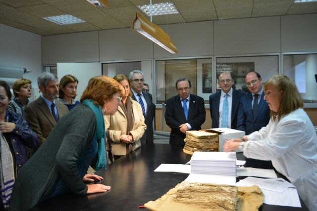 La Consejería de Educación, Cultura y Universidades, la Consejería de Economía y Hacienda, el Ayuntamiento de Cartagena, la Universidad de Murcia y el Colegio de Notarios de Murcia firmaron hoy el acuerdo con el que se da comienzo a los trabajos de restauración y recuperación de los 28 volúmenes de los protocolos notariales de Cartagena del siglo XVI, unos documentos que llevan décadas sin poder ser consultados.