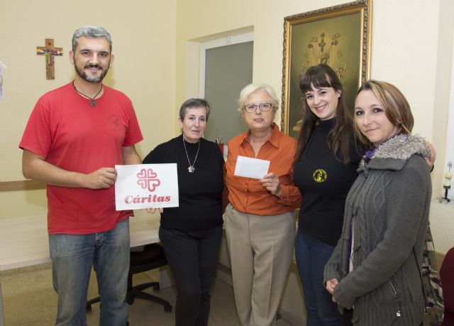 Los tres festeros Jean Claude (Rehenes), Celia (Himilcón) y Gema (Amazonas), en representación de sus asociaciones, entregaron el total de los beneficios obtenidos de la rifa benéfica que llevaron a cabo durante la fiesta "Coyote Púnico", a las representantes de Cáritas Parroquial de San Vicente de Paúl Conchi Olivo y Carmen Tirado. Ambas han expresado su agradecimiento a los grupos que realizaron la entrega, extensiva a todos los que colaboraron en recoger un dinero que servirá para sufragar parte de la próxima compra de alimentos destinada a los más necesitados de nuestra ciudad.
