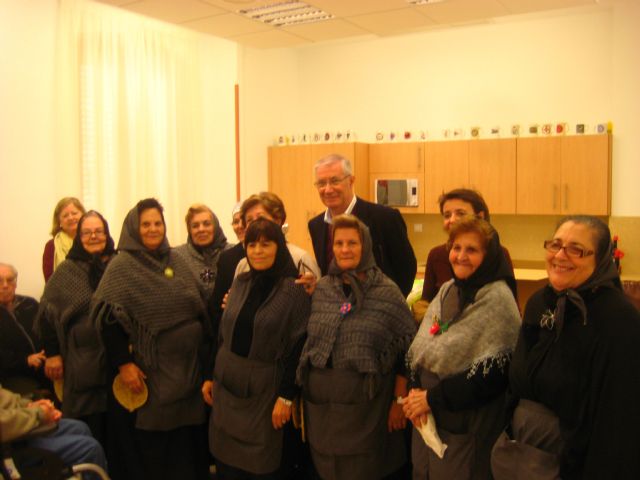 Las Castañeras de Virgen de la Caridad se acercan a la Residencia Hermanitas de los Pobres para regalar a sus ancianos castañas asadas y flores de novia. El concejal de Atención Social, Antonio Calderón les acompañó durante la visita.