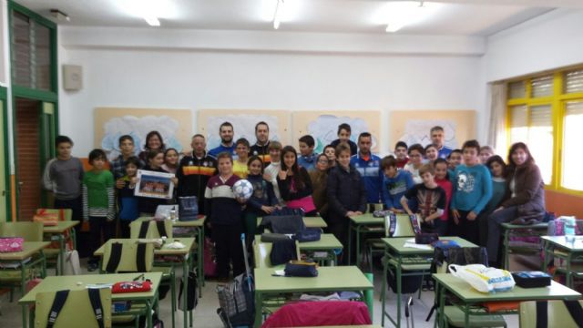El Club Plásticos Romero Fútbol Sala Cartagena, representado por el capitán, Javi Matia, los jugadores Sergio Rivero y Eli, y los técnicos, Jesús y Juan, visitó ayer miércoles los colegios San Isidoro y Santa Florentina, Ciudad Jardín y San Antonio Abad, tres de los centros educativos que participaron el pasado mes de noviembre en el MacroADE de fútbol sala que se celebró en el Pabellón Central de Deportes, donde se dieron cita medio millar de alumnos de primaria de siete centros.