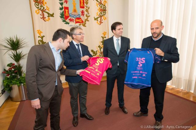 El concejal de Deportes, Diego Ortega, acompañado por el director general del diario, Antonio González, y el delegado de La Verdad en Cartagena, Gregorio Mármol, han lanzado hoy, durante la presentación de la carrera, una invitación a la ciudadanía para que participen en un cross ya tradicional en Navidad, o como decía el edil, animar a quien quiera venir a correrla y, el que no, que venga a verla y disfrutar del ambiente festivo que se respira en ella.
