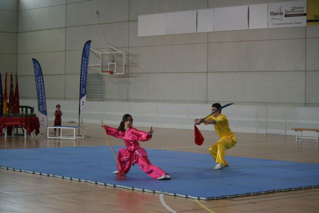 Los niños mostraron sus dotes de Artes Marciales y después intervinieron maestros y alumnos de Wushu de la escuela de Artes Marciales Chinas San Cai Long (Cartagena), Centro Deportivo Antonio Mateos (Ãguilas) y Escuela Chang Heung (Murcia) realizando varias demostraciones y creando una gran expectación.
